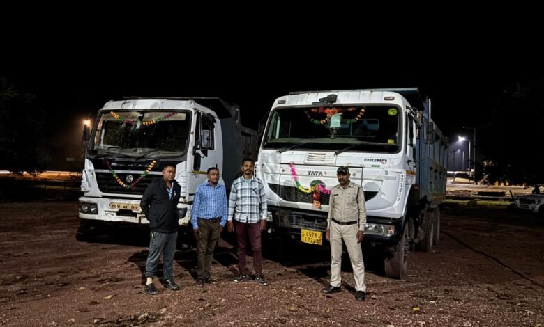 निरीक्षण के दौरान वाहन क्रमांक CG10 AK 5618 एवं CG28 AL 7222 को अवैध रूप से मुरुम का उत्खनन व परिवहन करते हुए पकड़ा गया। वाहनों के चालकों की पहचान क्रमशः श्री धर्मेन्द्र धीवर एवं श्री मोतीलाल के रूप में हुई। दोनों वाहनों को पुलिस चौकी साकेत की अभिरक्षा में रखा गया है।