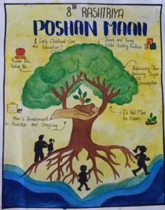 कार्यक्रम के दौरान बच्चों ने पोषण और स्वास्थ्य के महत्व को दर्शाते हुए पोस्टर भी बनाए, जिससे उनकी रचनात्मकता के साथ-साथ स्वास्थ्य जागरूकता भी बढ़ी।